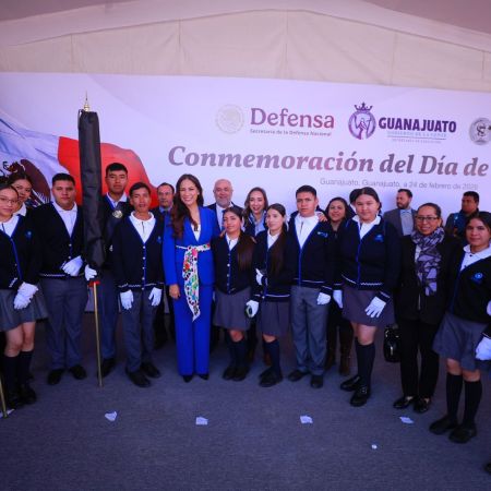 Abanderan a 25 escoltas escolares en ceremonia del Día de la Bandera en Guanajuato