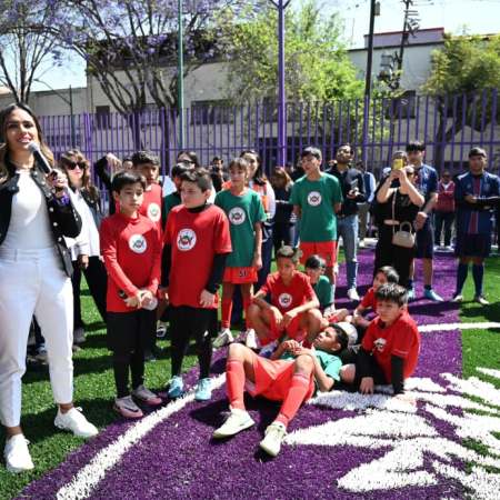 Ale Rojo de la Vega engtrega rehabilitación de cancha en Parque Sándalo