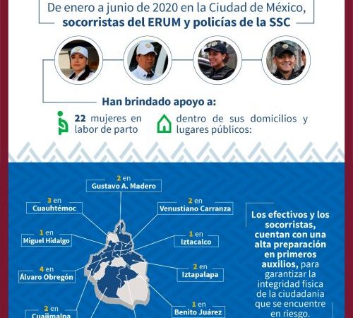 Paramédicos del Escuadrón de Rescate y Urgencias Médicas (ERUM) y policías de la Secretaría de Seguridad Ciudadana (SSC), dieron auxilio y apoyo a varias mujeres que, en diferentes circunstancias, entraron en labor de parto en distintos puntos de la Ciudad de México.