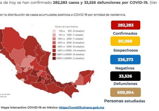 Además, llegó a 33 mil 526 muertes a causa de la enfermedad, es decir, 730 fallecimientos reportados de ayer a hoy.