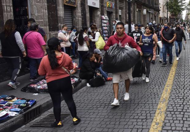 Familias realizaron compras sobre la calle de Correo Mayor, mientras el semáforo epidemiológico de la Ciudad de México se mantiene en naranja.