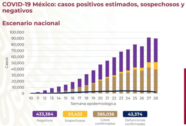 En la conferencia vespertina 148, Ruy López Ridaura, director general del Centro Nacional de Programas Preventivos y Control de Enfermedades (Cenaprece) dio el informe técnico sobre la pandemia en México en el destacan un acumulado de 385 mil 036 contagios y 43 mil 374 fallecidos.