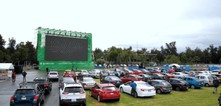 El Autocinema Mixhuca, instalado en el Autódromo Hermanos Rodríguez, ofreció su primera función este domingo. Acudieron familias completas y grupos de amigos, quienes llevaron sus palomitas, refrescos y tortas; además de portar sus cubrebocas.