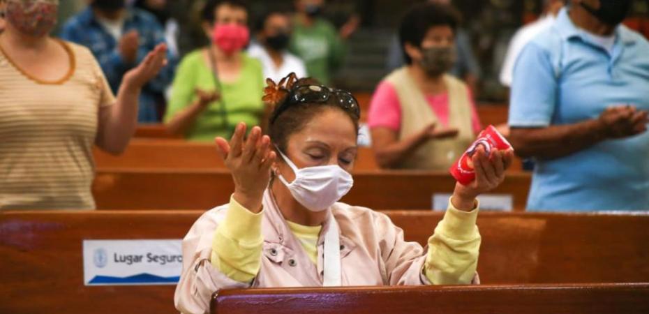 Controles de higiene, caretas, cubrebocas y la ausencia del saludo de la paz entran a los ritos litúrgicos; católicos elevan plegarias por la salud del mundo.