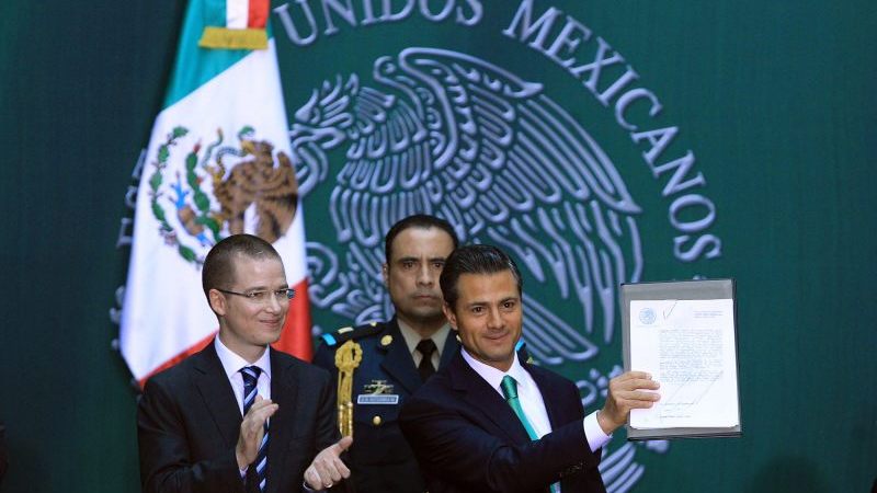 Esa legislación, que abría la puerta a la exploración y extracción del petróleo y demás hidrocarburos a empresas extranjeras, fue trabajada previamente por el PRI y negociada con el PAN para poder aprobarla en tiempo récord y presumirla como un «triunfo» del entonces presidente Enrique Peña Nieto.
