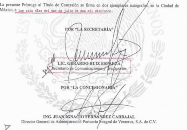 El ex Secretario de Comunicaciones y Transportes, Gerardo Ruíz Esparza, quien falleció el pasado primero de abril, fue quien firmó la ampliación de la concesión a la empresa la Administración Portuaria Integral de Veracruz, S.A. DE C.V. (Apiver) para que pudiera operar un total de 100 años el puerto veracruzano. El presidente Andrés Manuel López Obrador informó la mañana de este martes que buscará revocar dicho convenio, pues criticó que esta extensión por un siglo no se dio “ni en el porfiriato”.