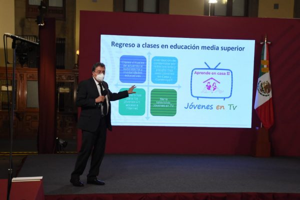 En el Salón de la Tesorería de Palacio Nacional, Arroyo Ortiz indicó que las actividades de aprendizaje a distancia se fortalecen con 4 acciones específicas: clases virtuales de acuerdo al subsistema y modalidades educativas; distribución de contenidos por redes sociales y las plataformas Jóvenes en Casa y ConstruyeT; cuadernillos de trabajo para los jóvenes sin acceso a internet, y las transmisiones de la barra televisiva Jóvenes en TV.