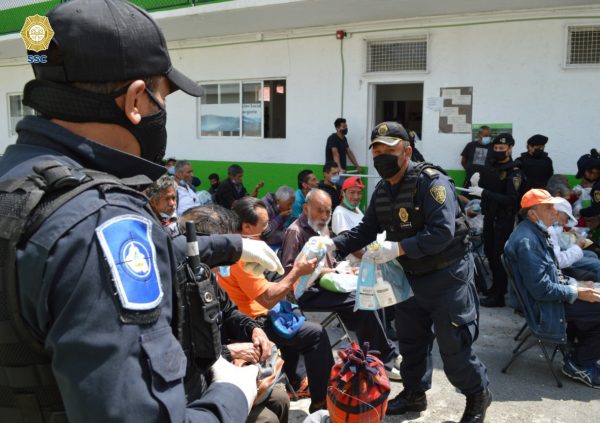 También, los uniformados hicieron entrega de alrededor de 350 bolsas ecológicas que contenían kits de higiene personal para mujeres y hombres, como jabón y esponja de baño, sandalias, cepillo y pasta dental, crema corporal, desodorante entre otros, además se realizó una donación de cubrebocas, gel antibacterial, y botellas con agua, con el objetivo de evitar contagios y la propagación del virus COVID19 entre los habitantes del albergue.