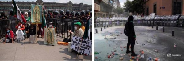 El sábado, durante una manifestación, los padres y madres de los 43 normalistas de Ayotzinapa convivieron pacíficamente con los manifestantes del plantón de FRENaaa, de igual manera hubo otra manifestación de electricistas ayer de solicitantes de vivienda, indicó Sheinbaun.