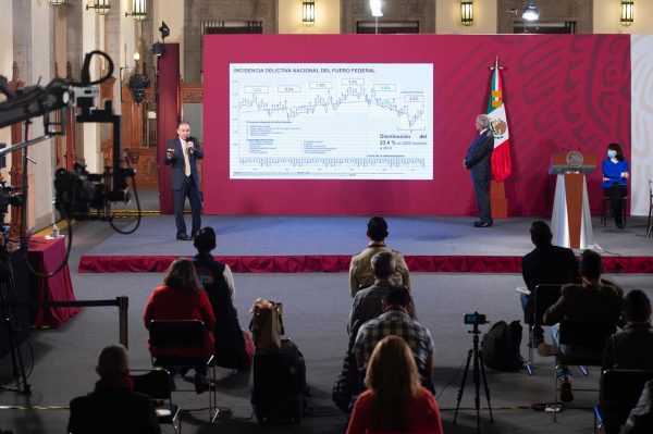 Reconoció durante la conferencia de prensa matutina en Palacio Nacional el trabajo relevante de la Secretaría de la Defensa Nacional y la Armada de México para lograr los resultados que fueron recogidos por la Instituto Nacional de Geografía y Estadística (Inegi) que reportó que de 2017 se incrementó la incidencia delictiva en 17% al 2018 y al 30% al 2019 cuando hubo un quiebre.