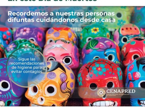 Las fiestas, ceremonias y eventos culturales con motivo del Día de los Fieles Difuntos, implican la concentración de personas, por lo que la CNPC recomienda evitar grupos que implican un escenario de contagio muy alto. Es importante mantener con rigor las medidas de sana distancia. La pandemia aún está presente.