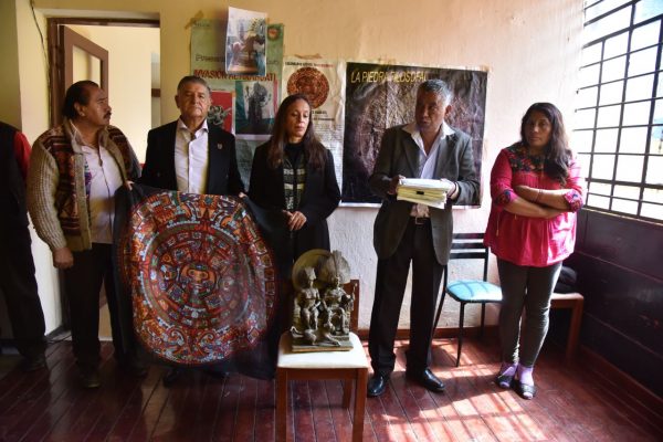 El representante indígena estuvo acompañado por el gobernador indígena de la Ciudad de México, Acamapixtli JM Castillo; el general en retiro Mario Cervantes Muñoz, presidente del Consejo Supremo de la Confederación Nacional de Seguridad y Justicia; Paulino López Jiménez, consejero Mayor Indígena de Xochicuautla; la abogada Hortensia Corona; la representante Piedad Garduño Suárez de Ayotusco y María Estéfany Zavala, de San Francisco Xochicuautla.