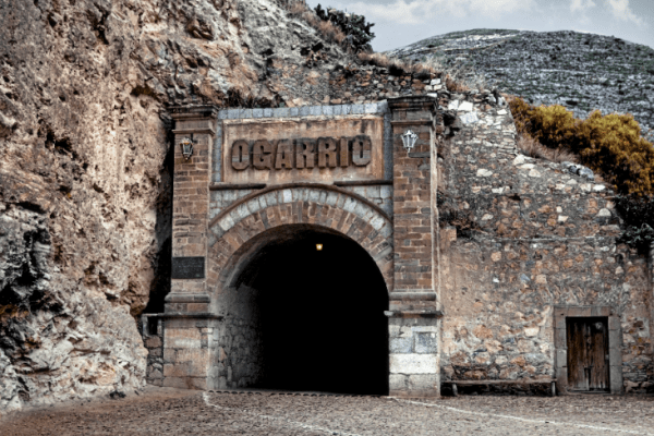 Cruza el Túnel Ogarrio, único en su tipo del país. Este punto es la entrada al Pueblo Mágico y mide aproximadamente 2 km, puedes cruzarlo en carreta comunitaria, transporte público o si deseas apreciarlo mejor, caminando. Al estar en él sentirás la humedad, el olor, verás su estructura única y así tendrás una mejor idea de cómo era la vida de los mineros que habitaban en este sitio, también podrás apreciar las entradas (ya tapadas) para ingresar otras galerías. Es Interesante, ya el túnel fue diseñada en un solo sentido, por lo que si vienen autos en sentido contrario tendrás que esperar para poder iniciar tu recorrido por el Ogarrio.