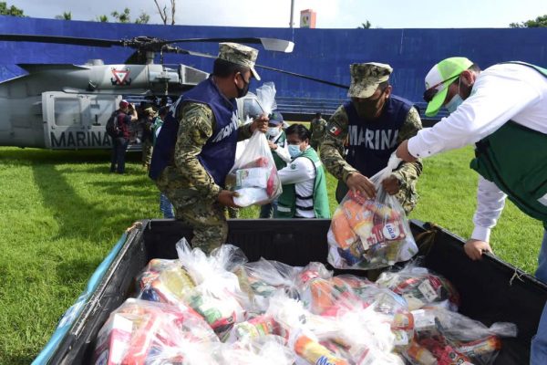 Agregó que los materiales entregados por personal de la Secretaría de la Defensa Nacional (Sedena) y de la Secretaría de Marina-Armada de México (Semar), se encuentran despensas, colchonetas, cobertores, kits de aseo, agua, pañales, toallas sanitarias, bañeras de bebé, entre otros artículos.