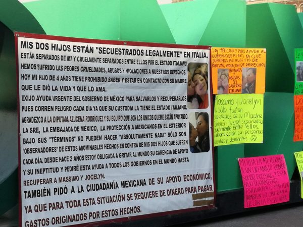 Debido a una disputa familiar Alma Cecilia Contreras tiene dos años de no ver a sus hijos, de quien fue separada de ellos en Italia y ante la negativa de las autoridades de Relaciones Exteriores de apoyarla, decidió trasladarse de León, Guanajuato, a la Ciudad de México para demandar apoyo federal para que regresen sus pequeños.