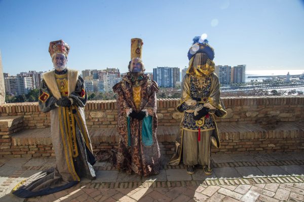 Melchor, Gaspar y Baltasar visitaron el palacio de la Alcazaba donde fueron recibidos por el alcalde de Málaga, Francisco de la Torre, y la concejala de Fiestas Teresa Porras. En ese mismo escenario a través de las cámaras televisivas se dirigieron a los niños de Málaga.