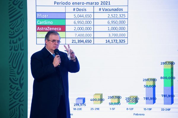 Anunció Ebrard Casaubón que la próxima semana se recibirán 400 mil dosis de la vacuna Sputnik V para un total de 21 millones 394 mil dosis de vacunas pactadas y firmadas.