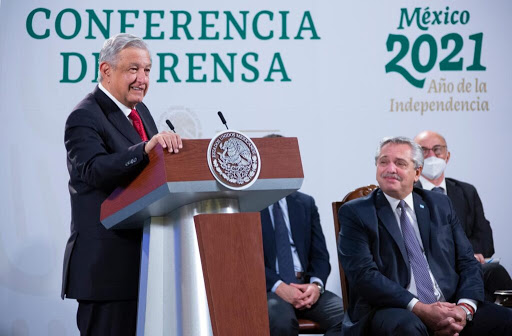 En el estrado donde estuvo el presidente Alberto Fernández, como lo hiciera también el presidente español Pedro Sánchez Pérez-Castejón, López Obrador se comprometió a actuar, “con absoluta rectitud y en defensa de la soberanía popular”.