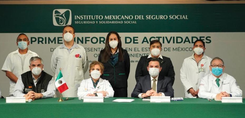En el marco del Primer Informe de Actividades de los representantes del IMSS en el Estado de México Poniente y Oriente, doctora Miralda Aguilar Patraca y doctor Misael Ley Mejía, respectivamente, Zoé Robledo indicó que se ha cumplido con la misión de mantener la política de cero rechazos a pacientes con COVID-19.