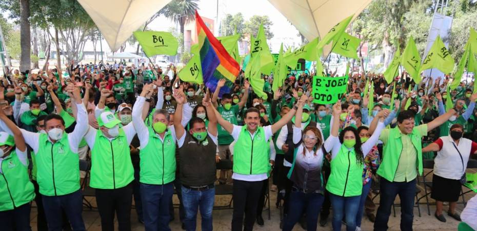 Entre porras y cantos, los candidatos a diputados locales y federales llamaron a los asistentes a comunicar las propuestas del Partido Verde a sus vecinos y familiares, y aseguraron que «Hoy más que nunca, en el Partido Verde estamos unidos por GAM».