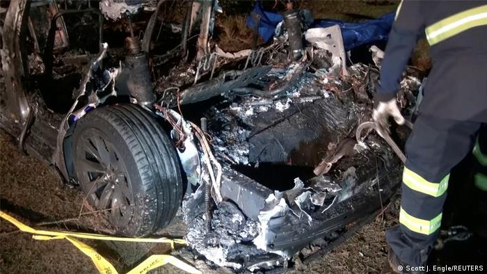 El Tesla se estrelló contra un árbol en una curva a alta velocidad y los bomberos necesitaron cuatro horas para apagar el incendio.