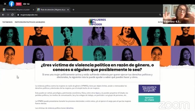 En ese encuentro se realizó la presentación del sitio www.mujeresalpoder.mx, que aporta una guía y recursos útiles para denunciar todos los actos de violencia y abusos para ejercer los derechos políticos y electorales esenciales de las mujeres.