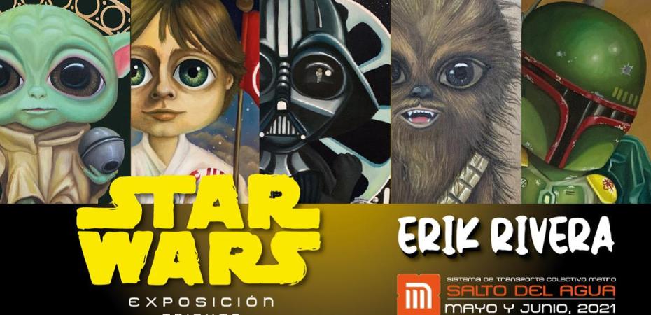 Estación del metro Salto del Agua de la Ciudad de México es la sala de exposición de la obra del artista mexicano Erik Rivera. Son más de diez óleos y bocetos que representan a los principales personajes de la saga de Star Wars durante mayo y junio del 2021.
