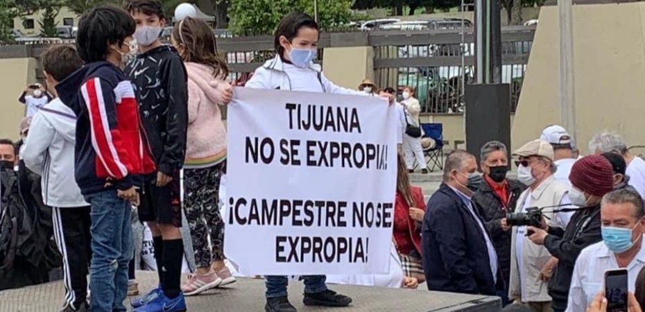 Al grito de «Tijuana no se expropia” y «Respeto a la propiedad privada», cientos de tijuanenses se manifestaron a las puertas del Club Campestre de Tijuana para protestar contra la pretendida idea de expropiar dicho inmueble, porque se violenta la propiedad privada y se afecta el clima de los negocios y de las inversiones en Baja California.