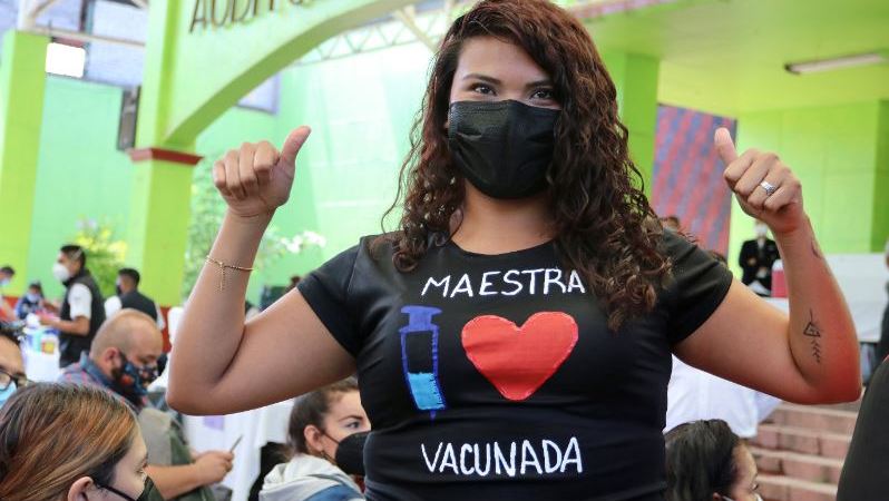 A su vez, la secretaria de Educación Pública informó que ya se vacunó al 80 por ciento de las 2 millones 915 mil 546 personas que integran al sector educativo de escuelas públicas y privadas en todo el país, quedando pendientes los estados de Chihuahua y Puebla, donde iniciará la vacunación docente la próxima semana.