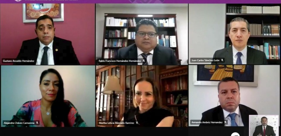 El Magistrado Presidente del Tribunal Electoral de la Ciudad de México (TECDMX), Gustavo Anzaldo Hernández, rindió el Informe Anual 2020 ante el Pleno de este Órgano Jurisdiccional, integrado por las Magistradas Alejandra Chávez Camarena y Martha Leticia Mercado Ramírez, así como por los Magistrados Armando Ambriz Hernández y Juan Carlos Sánchez León.