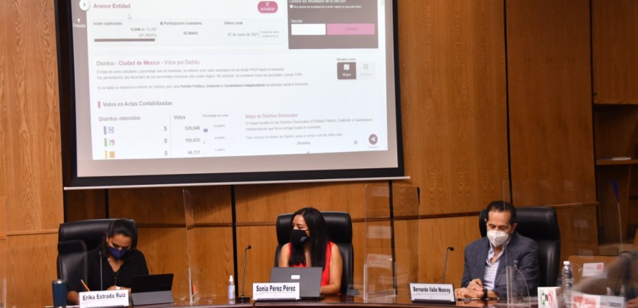 Igualmente, la Secretaría Ejecutiva informó que, con base en los reportes del Sistema de Cómputos Distritales por Demarcación del Proceso Electoral Local Ordinaria 2020-2021, con corte a las 11:39 horas, se tenía un avance del 89.84% del cómputo de los votos.