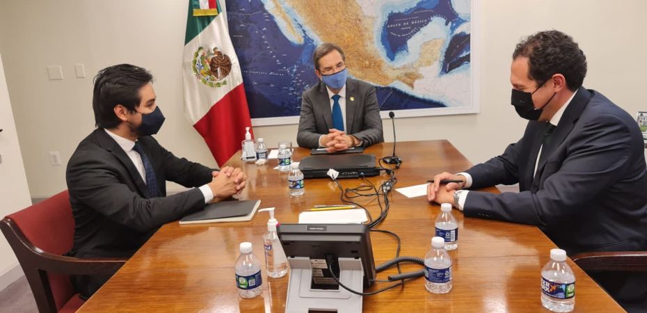 Los funcionarios concluyeron la visita de trabajo en una reunión con el embajador de México en Estados Unidos, Esteban Moctezuma, y con la jefa de Oficina, Jimena Saldaña, agradeciendo la coordinación y el apoyo recibidos para realizar sus gestiones.