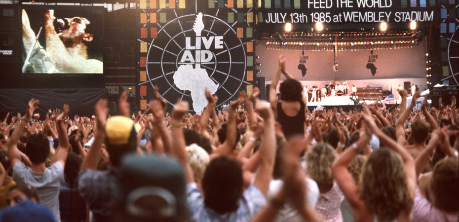 En el evento benéfico «Live Aid», llevado a cabo ese año de forma simultánea en Londres, Filadelfia, Sídney y Moscú, participaron grandes bandas de rock y solistas como por ejemplo Queen, Led Zeppelin y Paul McCartney.