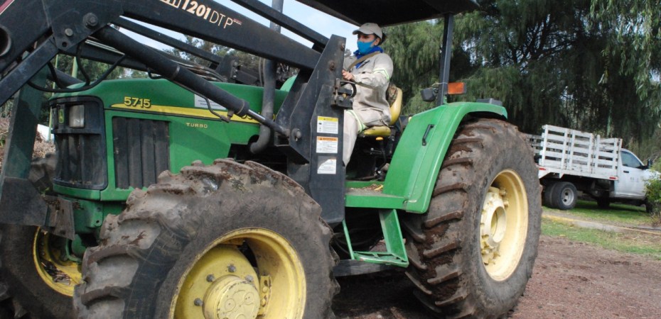 “Con el tractor hago el volteo de pilas (pedacería de troncos, hojas y ramas); con el minicargador o la retroexcavadora cargo los camiones de volteo con mulch, triturado o bien con composta”, dice nuestra protagonista.