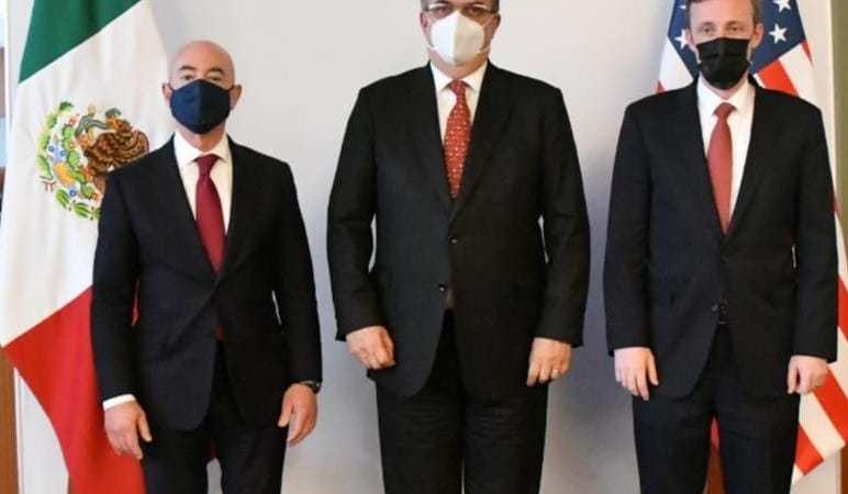 En la reunión inicial, el canciller estuvo acompañado por Ricardo Mejía Berdeja, subsecretario de Seguridad Pública; Maximiliano Reyes, subsecretario para América Latina y el Caribe; Roberto Velasco Álvarez, jefe de la Unidad para América del Norte; Francisco Garduño Yáñez, comisionado del Instituto Nacional de Migración; así como por el general Vicente Antonio Hernández Sánchez, comandante de la Guardia Nacional en la Frontera Sur; el general Guillermo Briseño Lobera, subjefe del Estado Mayor de Sedena; el vicealmirante Benito Galeana Abarca subjefe administrativo del Estado Mayor de Semar; Rodrigo de la Riva Robles, jefe de oficina de la Secretaría de Seguridad y Protección Ciudadana, y Armando López Cárdenas, asesor del comisionado Garduño.