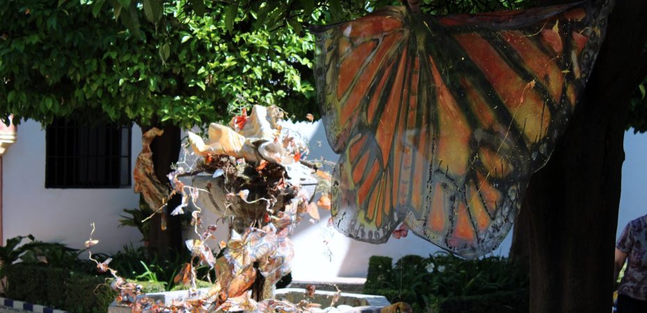La artista mexicana Lucila Veloz G. es la responsable de que en la plaza Costa del Sol de Torremolinos, en Destino Tapa emigre la mariposa Monarca. Son 45 piezas realizadas en seda natural y otros textiles transparentes pintados a mano con la técnica personal de la artista. La serie ha sido realizada ex profeso para ser mostrada en un lugar nuevo y alternativo.