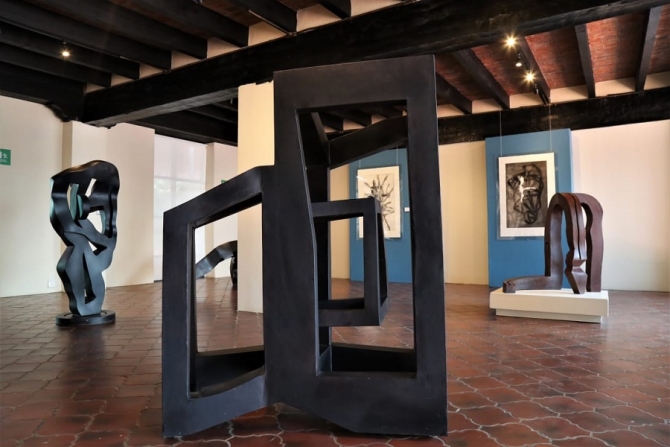 • Son 40 piezas de pintura al óleo, grabado y esculturas que retratan figuras abstractas.