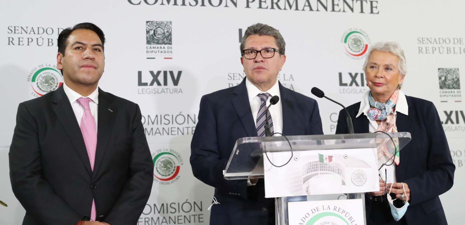 El Senador Ricardo Monreal ofreció una conferencia de prensa en el patio del Federalismo, en la que participaron Olga Sánchez Cordero, virtual presidenta de la Mesa Directiva del Senado, así como el senador Eduardo Ramírez Aguilar,