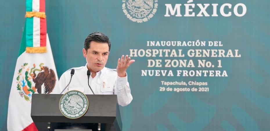 El director general del Instituto Mexicano del Seguro Social (IMSS), Zoé Robledo, acompañó al presidente Andrés Manuel López Obrador a la inauguración oficial del Hospital General de Zona (HGZ) No. 1 “Nueva Frontera, de este Instituto, que cuentan con la mejor infraestructura en Chiapas: 8 quirófanos, 180 camas censables, 38 especialidades, Unidad de Cuidados Intensivos para adultos y pediátricos y sala de Urgencias, entre otros.