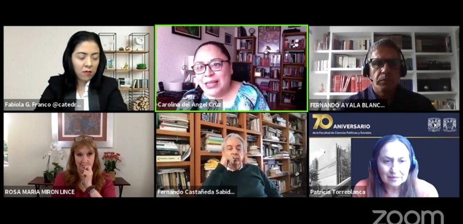 En la inauguración del evento, también participaron las personas profesoras e investigadoras de la Faculta de Ciencias Políticas y Sociales (FCPyS) de la UNAM, Fabiola G. Franco, Patricia Martínez Torreblanca, Rosa María Mirón Lince, Fernando Ayala Blanco y Fernando Castañeda Sabido.