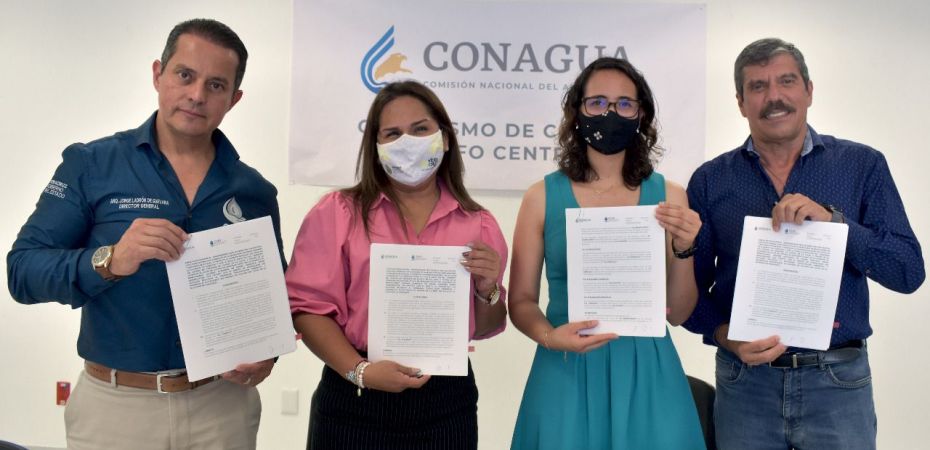 Durante la firma del convenio, se contó también con la presencia de Liliana Mendiola Yepez, jefa de la Unidad de Cultura del Agua y Participación Ciudadana de la CAEV, y Melania Libertad Ávila Rojano, responsable del Programa de Cultura del Agua del OCGC.