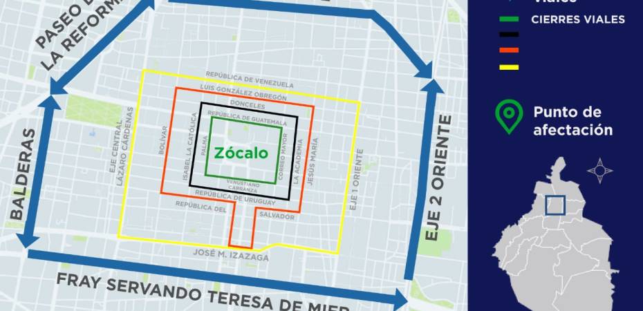 Por lo anterior, se implementará un cerco perimetral en la calle República de Venezuela y en las avenidas Eje Central Lázaro Cárdenas, Eje 1 Oriente, así como la avenida José María Izazaga.