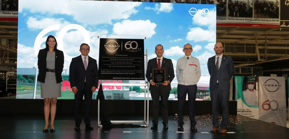 En el marco del sexagésimo aniversario de Nissan en México, el Gobernador Constitucional del Estado de Aguascalientes, Martín Orozco Sandoval, junto con José Román, presidente y director general de Nissan Mexicana y NIBU, así como Joan Busquets, vicepresidente de Manufactura de Nissan Mexicana, develaron una placa conmemorativa para celebrar la contribución de la empresa en México y en el Estado.