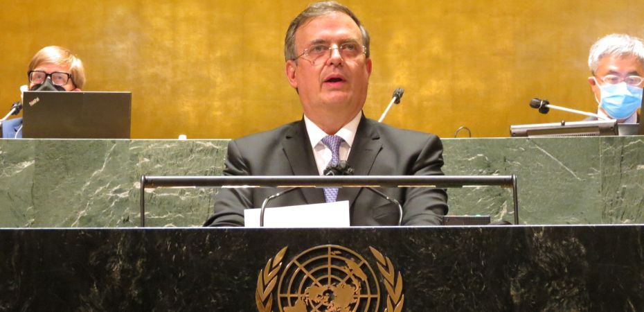 El secretario de Relaciones Exteriores, Marcelo Ebrard, se dirigió a la 76 Asamblea General de las Naciones Unidas. El posicionamiento de nuestro país se enfocó en las lecciones de la pandemia, así como en los retos por venir. “Esta crisis sin precedentes no puede superarse con acciones unilaterales o aisladas, sino mediante una renovada cooperación y genuina solidaridad internacional”, afirmó el canciller.