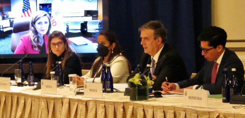 Por parte del Gobierno de México, la delegación estuvo encabezada por el canciller Marcelo Ebrard, quien estuvo acompañado por el embajador Juan Ramón de la Fuente, representante de México ante la Organización de las Naciones Unidas, y Roberto Velasco Álvarez, jefe de la Unidad para América del Norte. Por su parte, la delegación estadounidense fue dirigida por el secretario de Estado Antony Blinken, quien estuvo acompañado por la embajadora Linda Thomas-Greenfield, representante de los Estados Unidos ante la Organización de las Naciones Unidas, y Samantha Power, administradora de la Agencia de los Estados Unidos para el Desarrollo Internacional (USAID); Uzra Zeya, subsecretaria de Seguridad Civil, Democracia y Derechos Humanos; Brian Nichols, subsecretario del Hemisferio Occidental del Departamento de Estado.