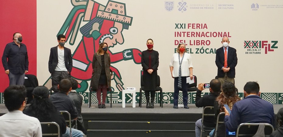 la presentación de la XXI Feria Internacional del Libro en el Zócalo 2021, –que se desarrollará del 8 al 17 de octubre– y la cual, resaltó, promoverá el acceso popular al libro.