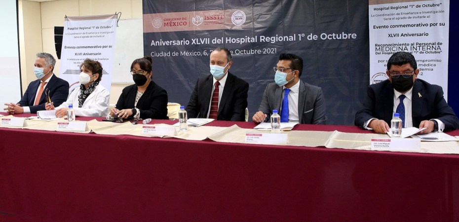 En el evento presencial de la Inauguración del Evento Conmemorativo del 47º aniversario del Hospital Regional 1º de Octubre, el representante del director general del ISSSTE y coordinador de Gestiones del Instituto, Sergio Lemus de Azcué, acompañado del presidente del CEN del SNTISSSTE, Luis Miguel Victoria Ranfla; el secretario técnico de la Comisión de Vigilancia, Heriberto Romero Peralta, la titular del nosocomio, Luz María Goti Rodríguez, reconoció la labor del personal, quienes en 2020, aún con la COVID-19, otorgaron 126 mil 944 consultas y realizaron 4 rmil 655 cirugías.