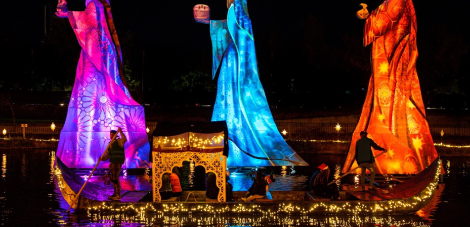 Medio Oriente está dedicado a los Reyes Magos y su travesía siguiendo la estrella de Belén para llevar regalos al niño Jesús. Las monumentales figuras de Melchor, Gaspar y Baltazar se erigen en medio de un lago, y podrás acercarte a ellas, en un paseo en lancha.
