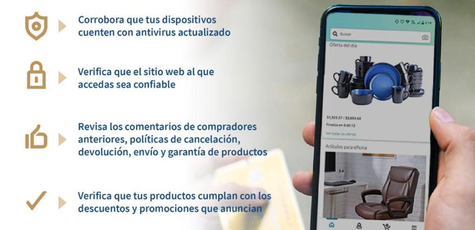 - Dudar de ofertas muy por debajo del mercado, ya que estas pueden ser de dudosa procedencia; se puede verificar si la empresa está debidamente registrada para participar en el evento, en el sitio oficial https://www.elbuenfin.org/.