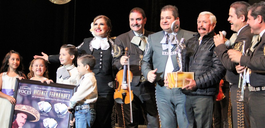 La compañía “Grandes Voces” realizó, la noche de este viernes 26 de noviembre, un emotivo y cálido reconocimiento al cantante mexicano Vicente Fernández, donde más de 50 músicos al unísono, cantaron la música del “Número Uno” de la canción ranchera, como un gran homenaje al legado y enseñanza que ha dejado “Don Chente” Fernández.